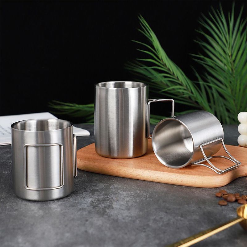 Premium Double-Wall Stainless Steel Camping Mug (300ml) – Insulated, Lightweight & Foldable Handle