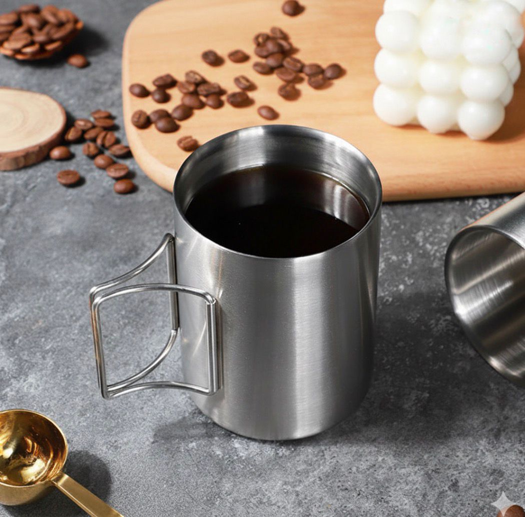1 x 300ml Double-Wall Stainless Steel Mug with Foldable Handles.
